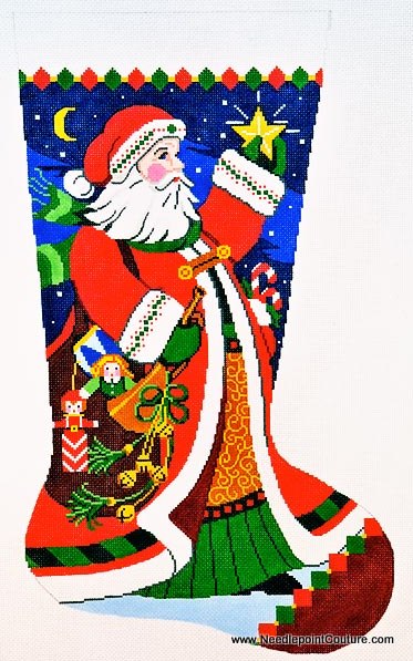 Santa Bugle Christmas Stocking Needlepoint by Lee's Needle Arts.